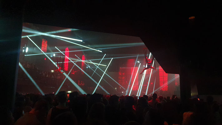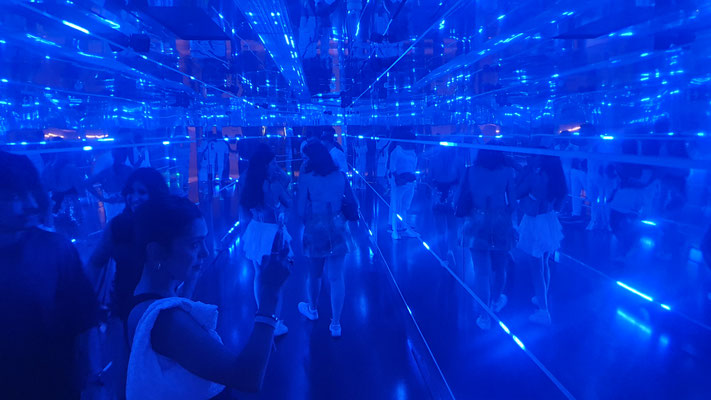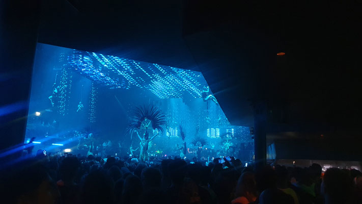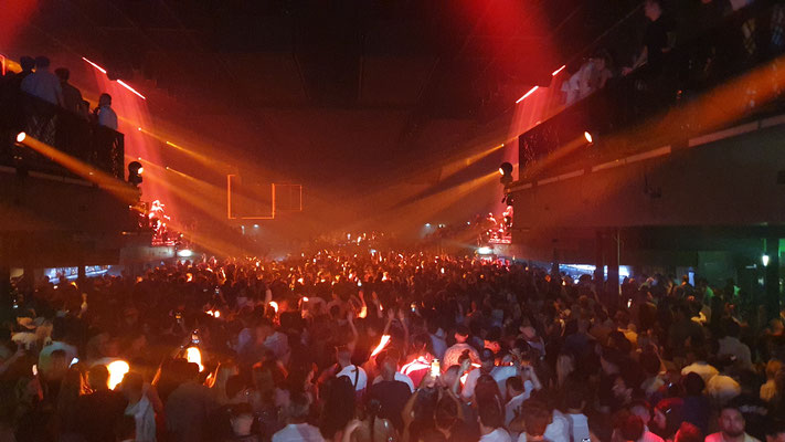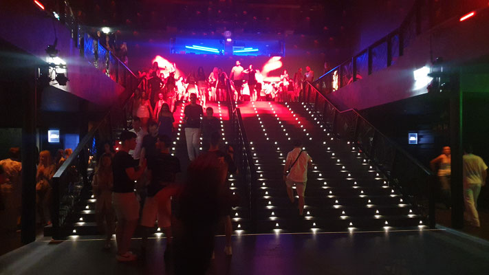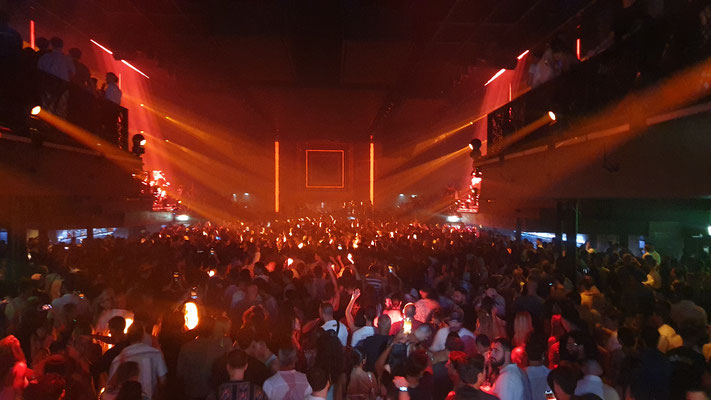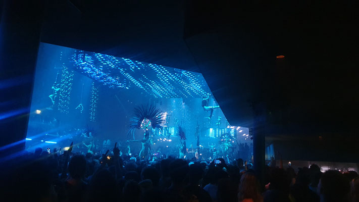 Ab ca. 2 Uhr früh ist auf dem Main Floor kein Durchkommen mehr. Ausgenommen man heißt David Guetta. Denn der französische Star-DJ bahnt sich vor seinem Auftritt um ca. halb 3 Uhr früh – mit Hilfe der Security – einen Weg durch die Menge, um dann vor rund 10.000 Besuchern jeden Freitag im Sommer seinen Galactic Circus zu präsentieren: Sexy Tänzerinnen on the Floor und Akrobatinnen auf Seilen und Trapezen als bunte LED-beleuchtete Kulisse, auf der Setlist neben Guettas Eigenproduktionen rasante Mash Ups, Club Classics (a la „Free“, „Levels“ oder Gypsy Woman“) und Pop-Mega-Hits like „I just died in your arms tonight“, Amy Winehouse´s „Back to Black“ oder Abba´s „Gimme Gimme Gimme a Man after Midnight“ inmitten von Glitzer und Konfettiregen. Nur einer von sieben sensationellen Club Nights im ersten UNVRS-Sommer. Die weiteren (derzeit nur männlichen) Protagonisten der Nacht: Eric Prydz mit seiner Holosphere-Show (Montag), Anyma (Dienstag), Jamie Jones (Mittwoch), der sich von der Decke abseilende Australian-DJ Fisher (Donnerstag), Barcelonas Party-Kollektiv Elrow (Samstag) und Ex-Space-Kult-DJ Carl Cox (Sonntag).