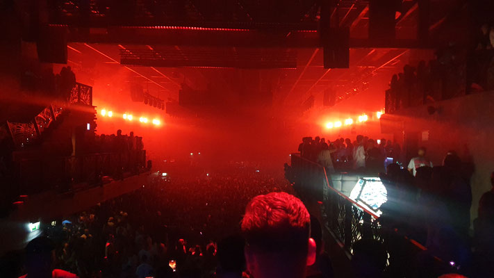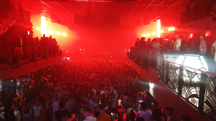 Betritt man den Main Room so um Mitternacht, dann hat man von oben noch einen entspannten Blick auf die riesige Tanzfläche, die man über breite Treppen abwärts betritt. Noch ideal für Selfies und Shots auf Instagram, Facebook & Co oder für Getränkebestellungen an den seitlich positionierten Bars. Red Bull Wodka 27 Euro, Bier 18 Euro, Wasser in der Unvrs Edition 15 Euro. Preise für hedonistische Rich Kids. Aber nicht der einzige Grund, warum die Rave Generation in jedem „Summer of Love“ zu euphorischen Glückspillen greift. Denn die Nächte in Ibiza dauern – trotz behördlicher Sperrstunde um 6 Uhr früh – bis weit in den Morgengrauen. I can´t get no sleep, you know what I mean.