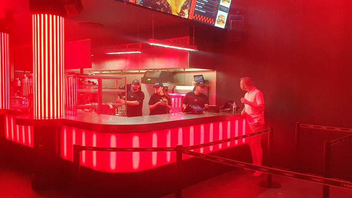 Exzess ist nicht nur angesagt in der monumentalen Main Hall, sondern auch im verwinkelten Labyrinth des neuen Hyper Clubs. Bei den Toiletten (!) angesiedelt ist der hippe Wild Comet, der Bunker lädt zu fast privaten Underground-Parties mit einer Kapazität von rund 100 Clubbern. Wer sich vor dem Dance Inferno noch stärken will, der kann sich festival-like Burgers und Pommes in einem eigenen Food Court bestellen.